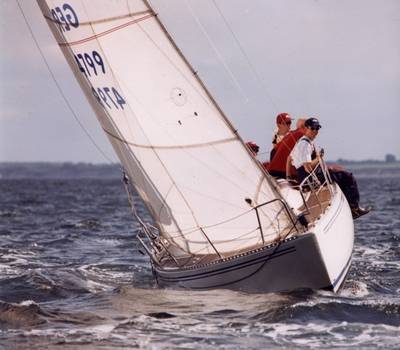 Ein schönes Schiff, diese Larsen 25! Recht schnell ist sie — obwohl doch eher klein. Aber die Ellide hat mit immerhin rund 2 m mehr Länge manchmal Schwierigkeiten mitzuhalten… Und das macht Spaß! Manche sagen, sie segle sich wie eine Jolle. Stimmt wohl, wenn man sich nicht auf einen Piraten traut. Nein, sie ist schon ein Schiff, die Springburn, und kein Boot. Besonders auf Regatten kann man sie zu viert so richtig fordern. Glaubt man — obwohl es doch zumeist eher das Schiff ist, welches die Besatzung fordert. Ein perfektes Boot für den ASV, weil man den Umgang mit einer kleinen Crew und einem Kielschiff gut erlernen kann und dann aber auch schon sportlich segeln muß.